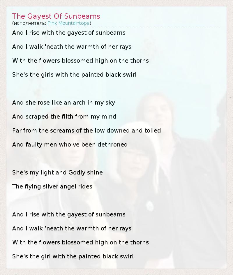 А как ты думаешь, о чем песня "The Gayest Of Sunbeams" ?