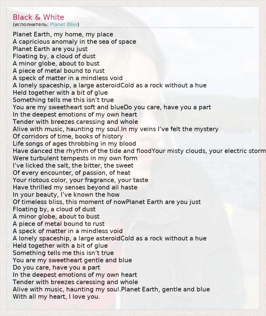 Of timeless bliss, this moment of nowPlanet Earth are you just