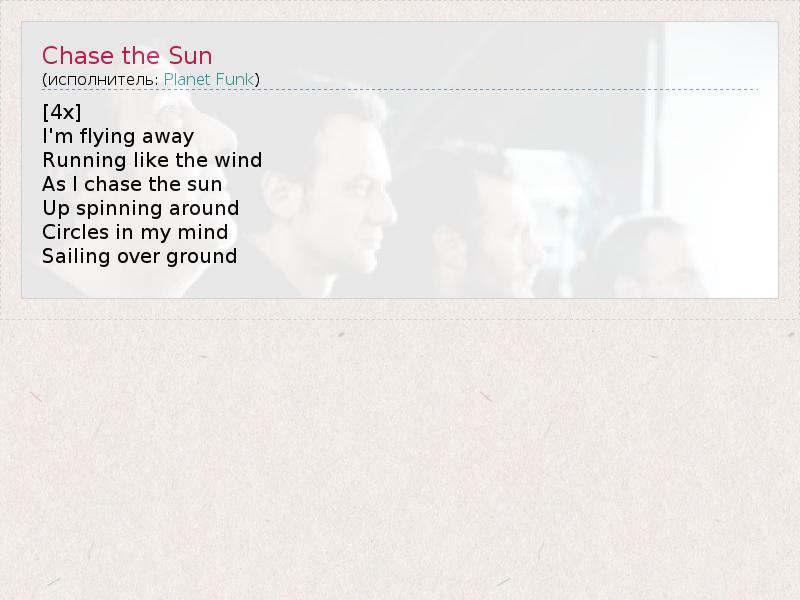 А как ты думаешь, о чем песня "Chase the Sun" ?