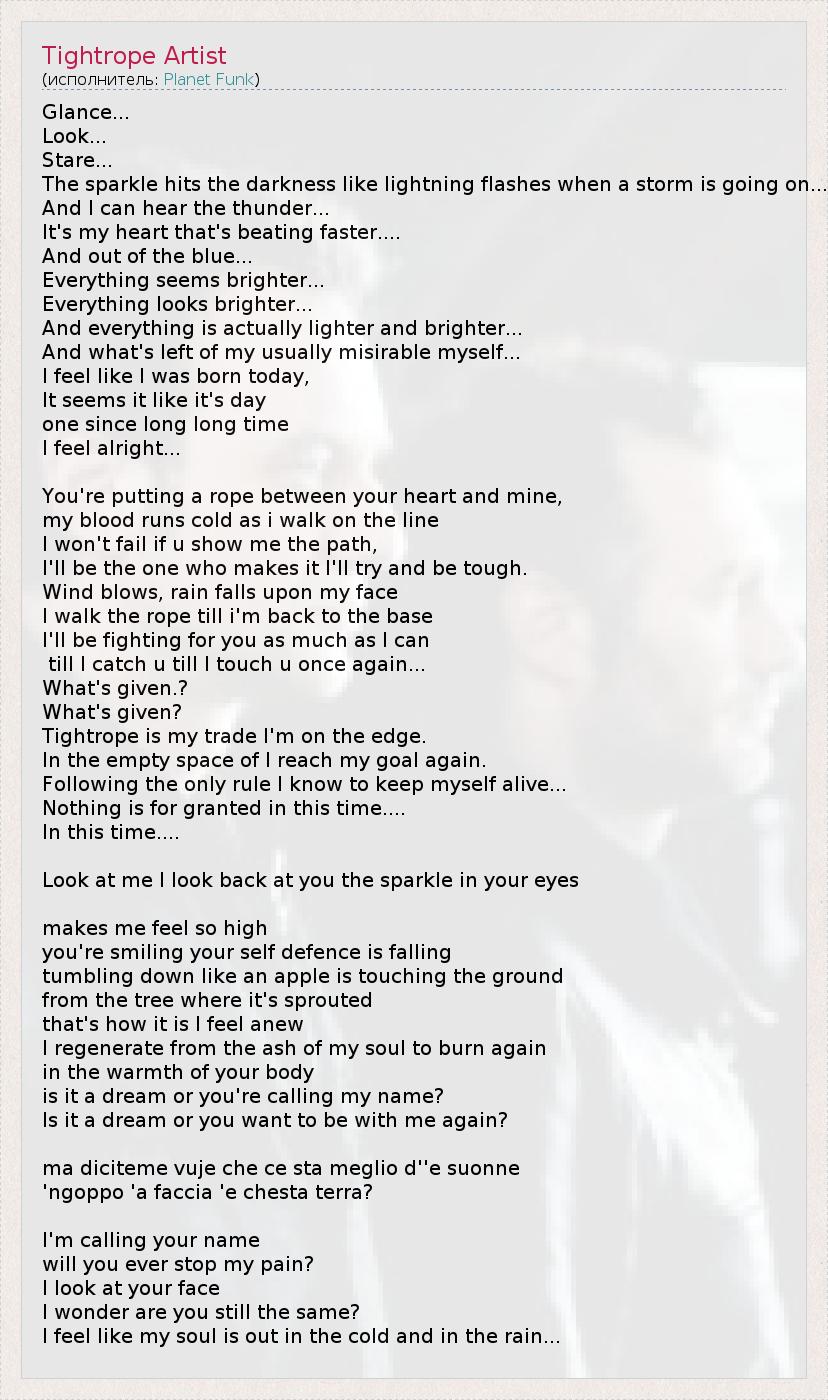 А как ты думаешь, о чем песня "Tightrope Artist" ?