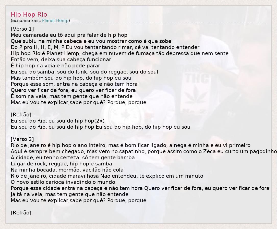 Eu sou do Rio, eu sou do hip hop Eu sou do hip hop, do hip hop eu sou