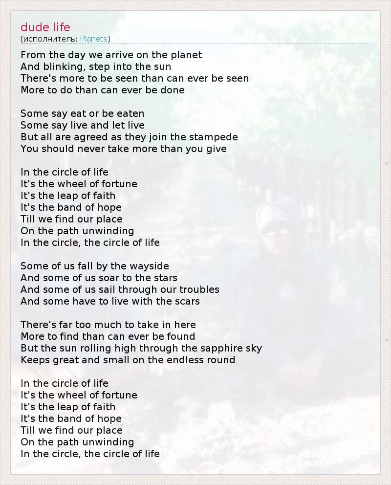 А как ты думаешь, о чем песня "dude life" ?