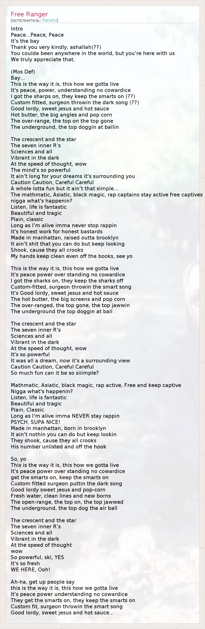 А как ты думаешь, о чем песня "Free Ranger" ?