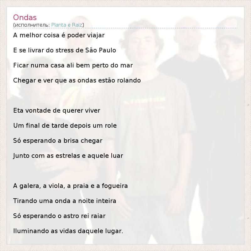 A melhor coisa é poder viajar E se livrar do stress de São Paulo Ficar numa casa ali bem perto do mar Chegar e ver que as ondas estão rolando Eta vontade de querer viver Um final de tarde depois um role Só esperando a brisa chegar Junto com as estrelas e aquele luar A galera, a viola, a praia e a fogueira Tirando uma onda a noite inteira Só esperando o astro rei raiar Iluminando as vidas daquele lugar.