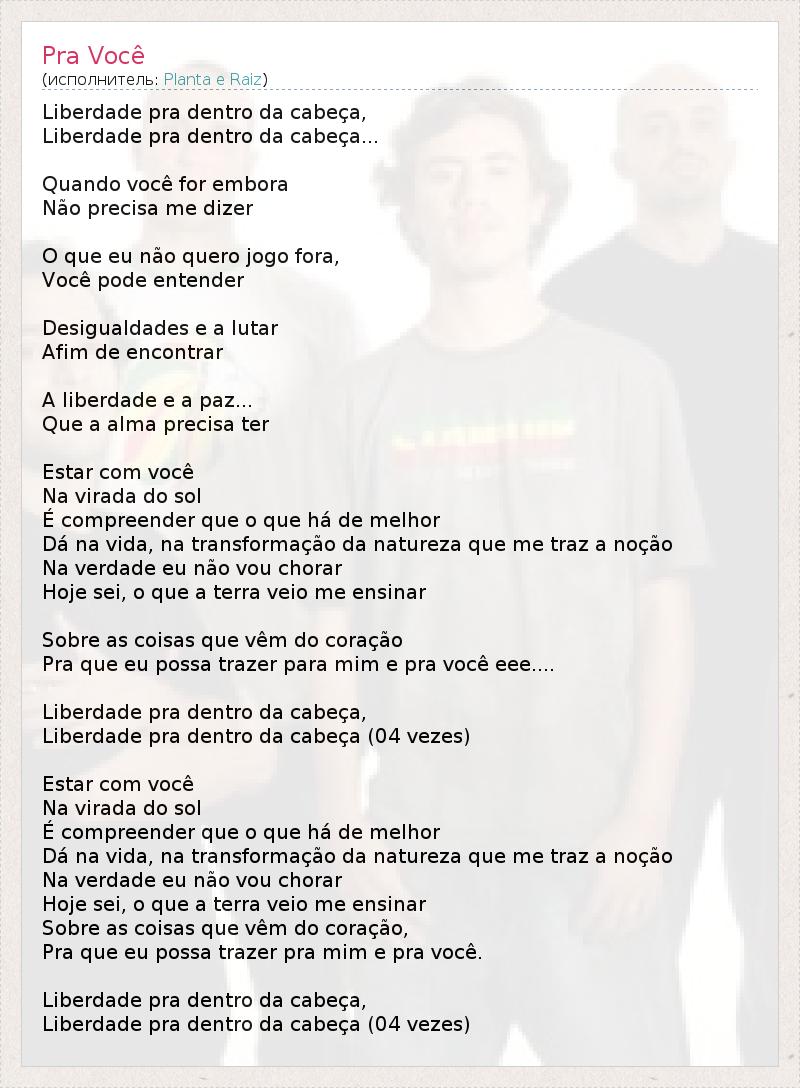 Liberdade пра Dentro да cabeça , Liberdade пра Dentro да cabeça ... Quando Você для embora Não Precisa меня Дизер O Que ЕС não Quero Jogo форумах , Você Поде entender Desigualdades электроннойlutar AFIM де encontrar Liberdade электроннойПас ... Queальма Precisa тер Эстар ком Você Na virada -ду-Сол Э. compreender Que о Que há де Melhor Da па Vida , па transformação да Natureza Que меня Траз в noção Na verdade ЕС não Vou chorar Hoje сеи , о Queтерра Veio меня ensinar Sobre как coisas Que VEM сделать Coração Пра Que ЕС possa trazer пункт мим электронной пра Você еее .... Liberdade пра Dentro да cabeça , Liberdade пра Dentro да cabeça ( 04 vezes ) Эстар ком Você Na virada -ду-Сол Э. compreender Que о Que há де Melhor Da па Vida , па transformação да Natureza Que меня Траз в noção Na verdade ЕС não Vou chorar Hoje сеи , о Queтерра Veio меня ensinar Sobre как coisas Que VEM сделать Coração , Пра Que ЕС possa trazer пра мим электронной пра Você . Liberdade пра Dentro да cabeça , Liberdade пра Dentro да cabeça ( 04 vezes )