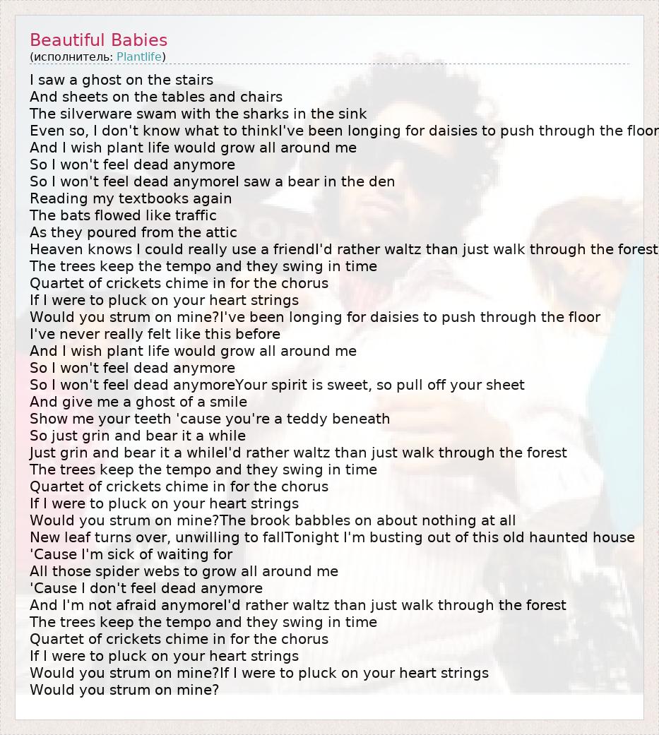 А как ты думаешь, о чем песня "Beautiful Babies" ?