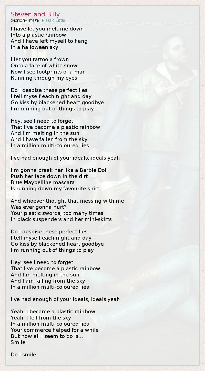 А как ты думаешь, о чем песня "Steven and Billy" ?