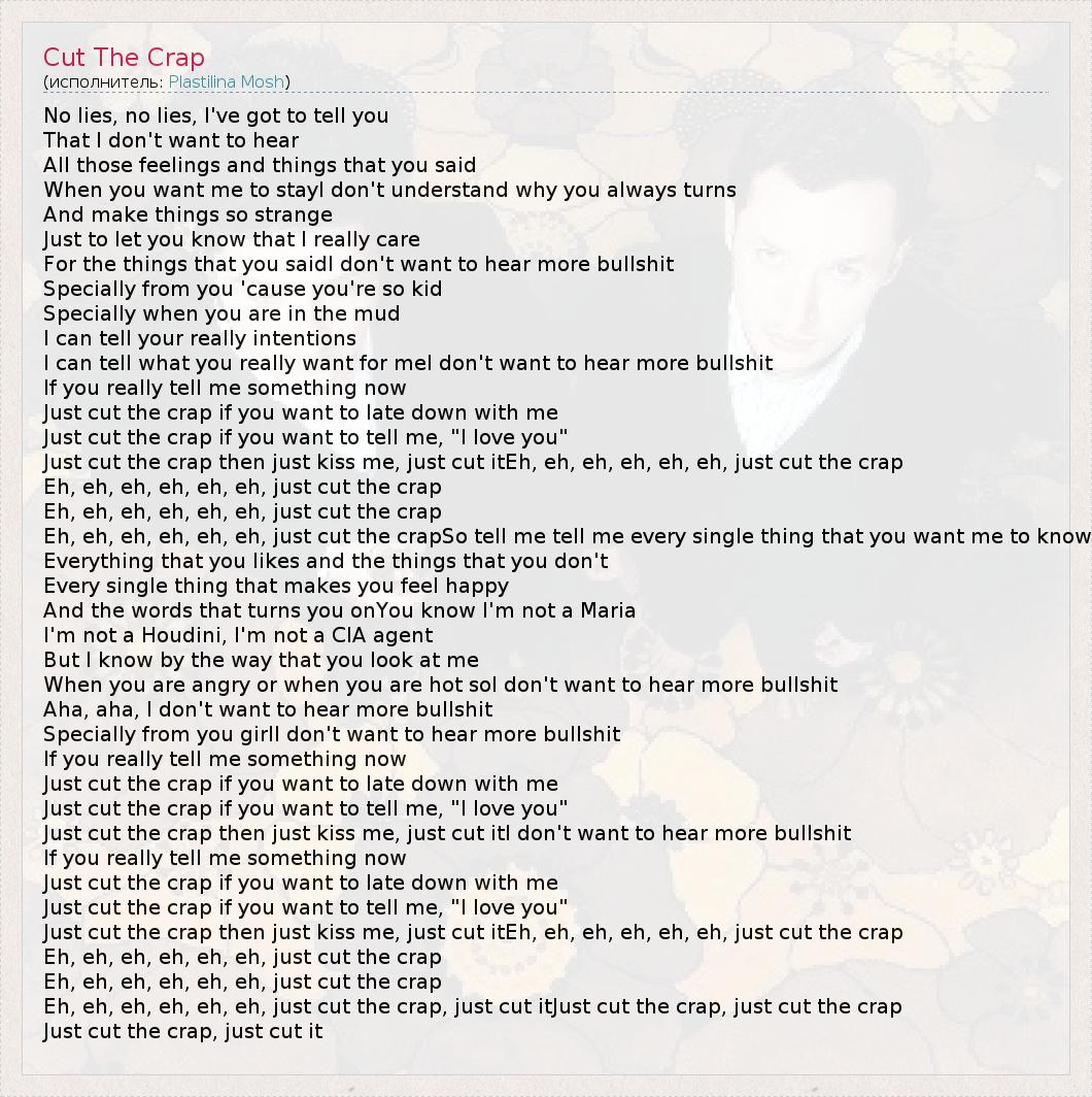 Just cut the crap then just kiss me, just cut itI don't want to hear more bullshit