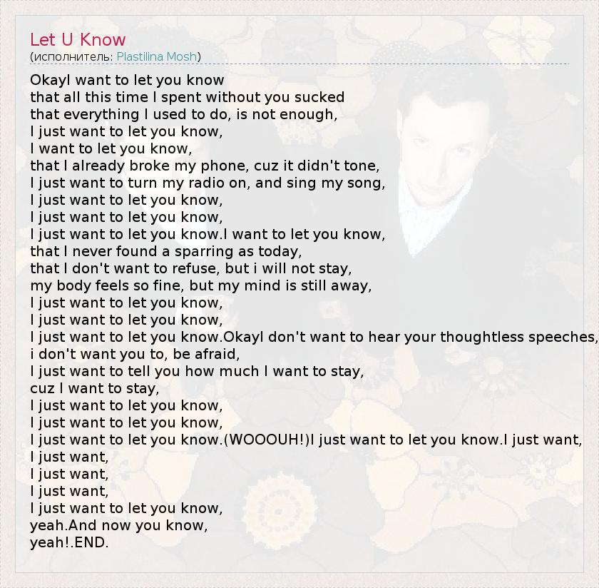 I just want to let you know.(WOOOUH!)I just want to let you know.I just want,