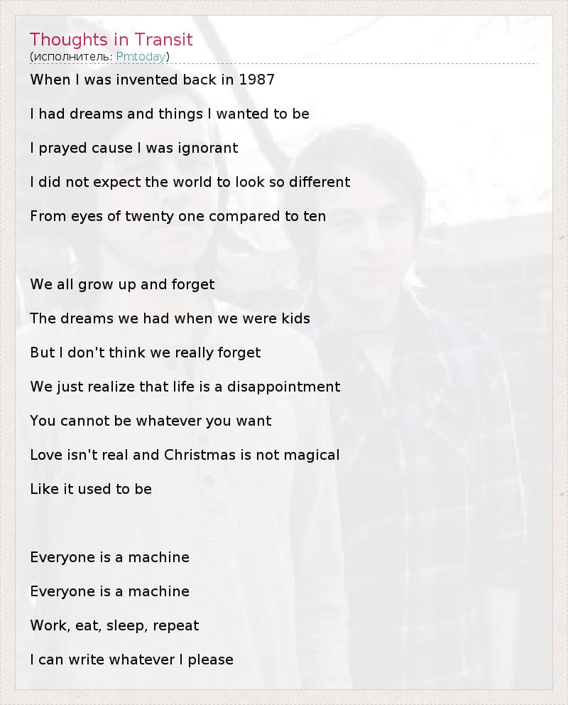 А как ты думаешь, о чем песня "Thoughts in Transit" ?