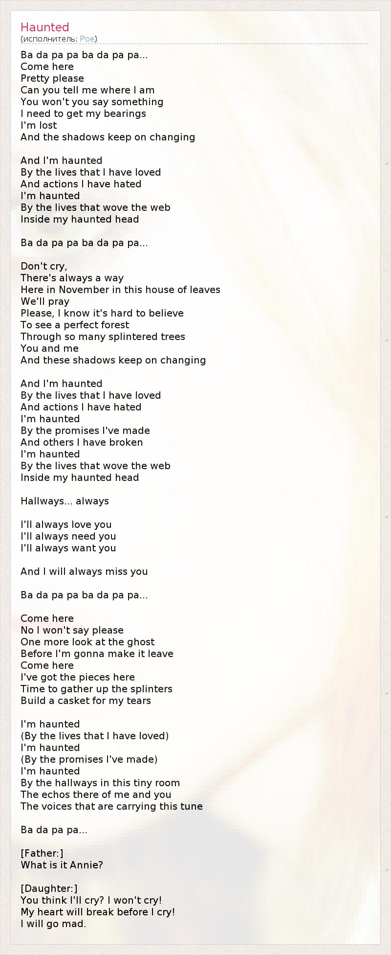 1 – отсылка к книге брата исполнительницы под названием "House of Leaves".