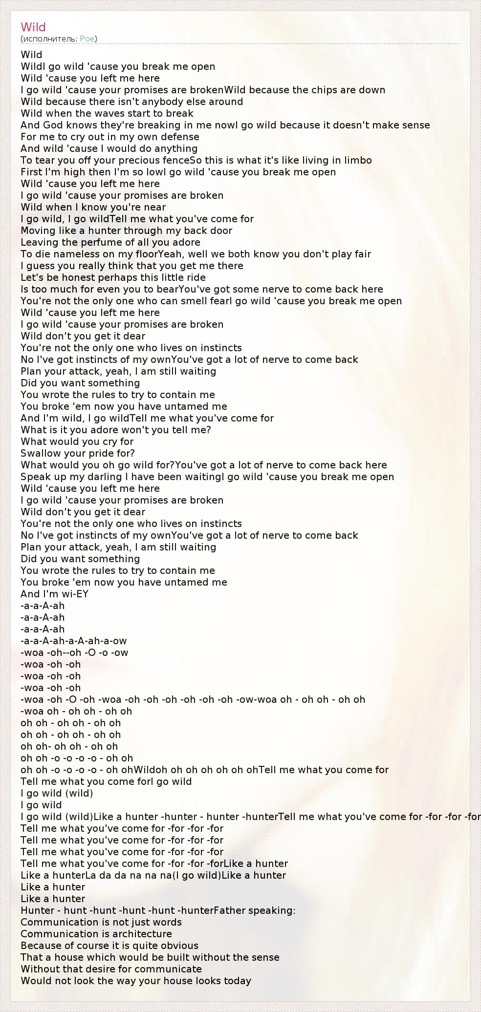 oh oh -o -o -o -o - oh ohWildoh oh oh oh oh oh ohTell me what you come for