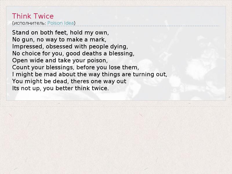 А как ты думаешь, о чем песня "Think Twice" ?