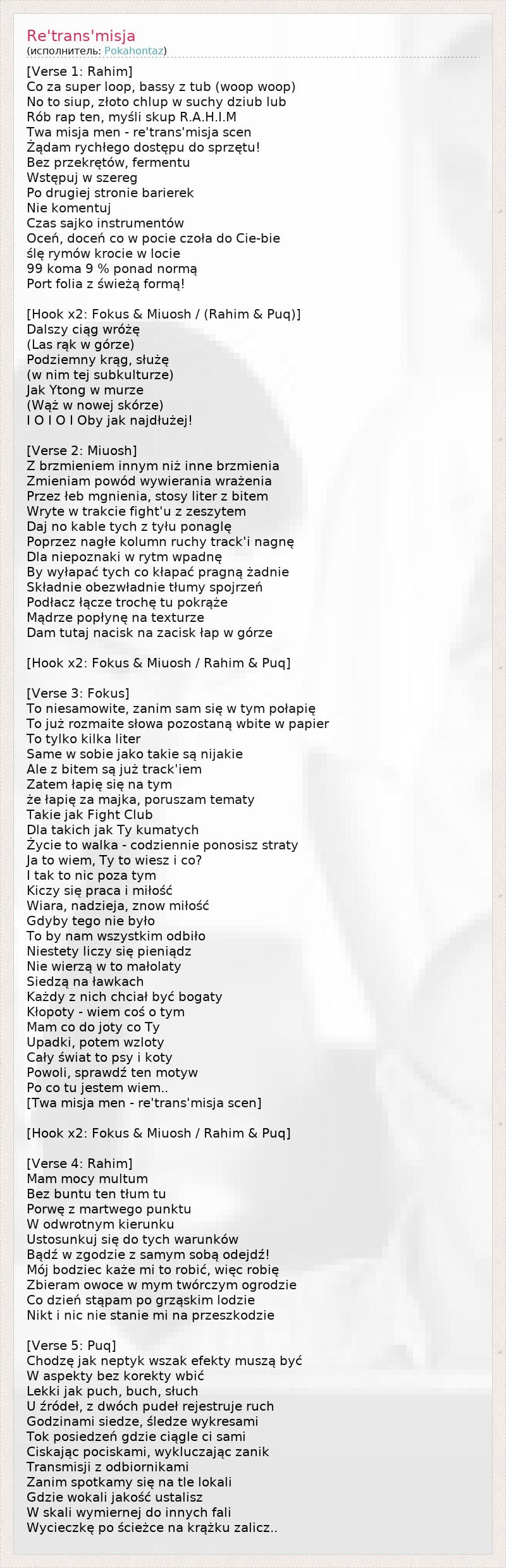 А как ты думаешь, о чем песня "Re'trans'misja" ?