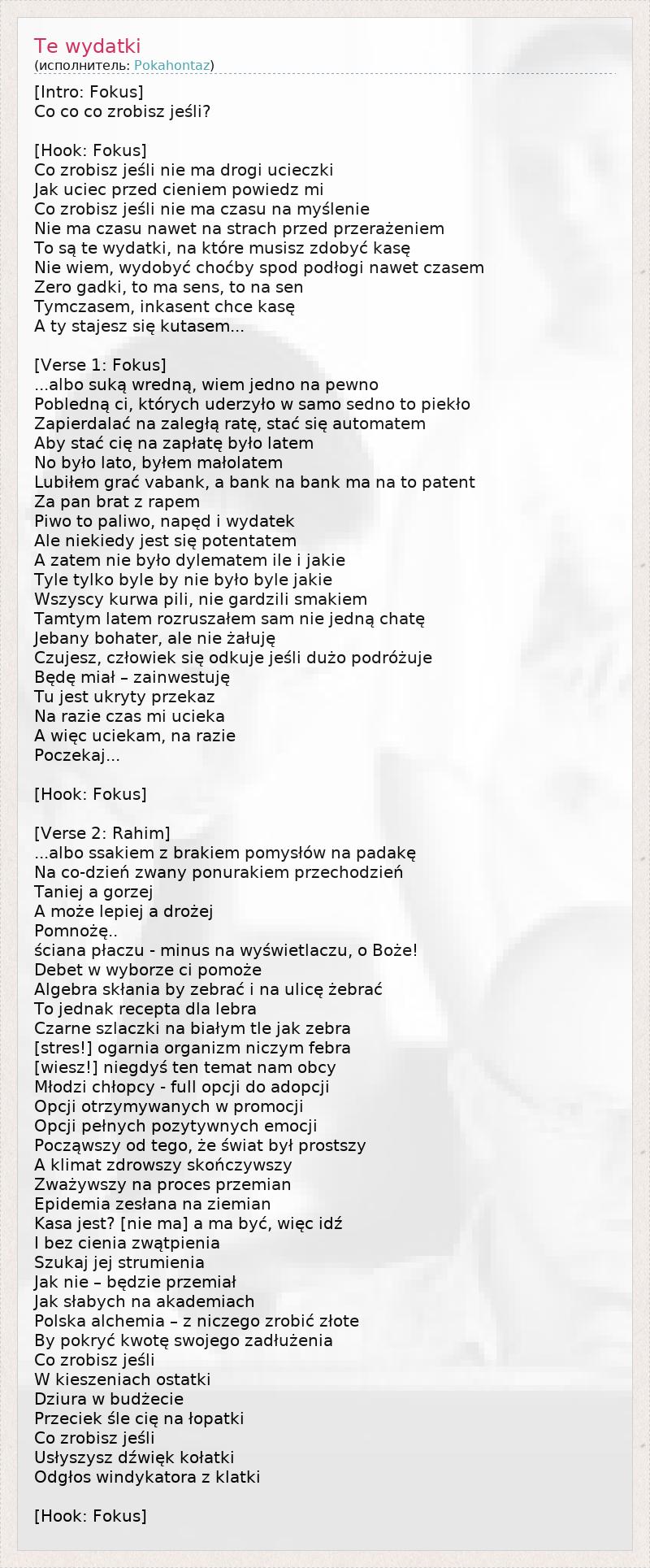 А как ты думаешь, о чем песня "Te wydatki" ?
