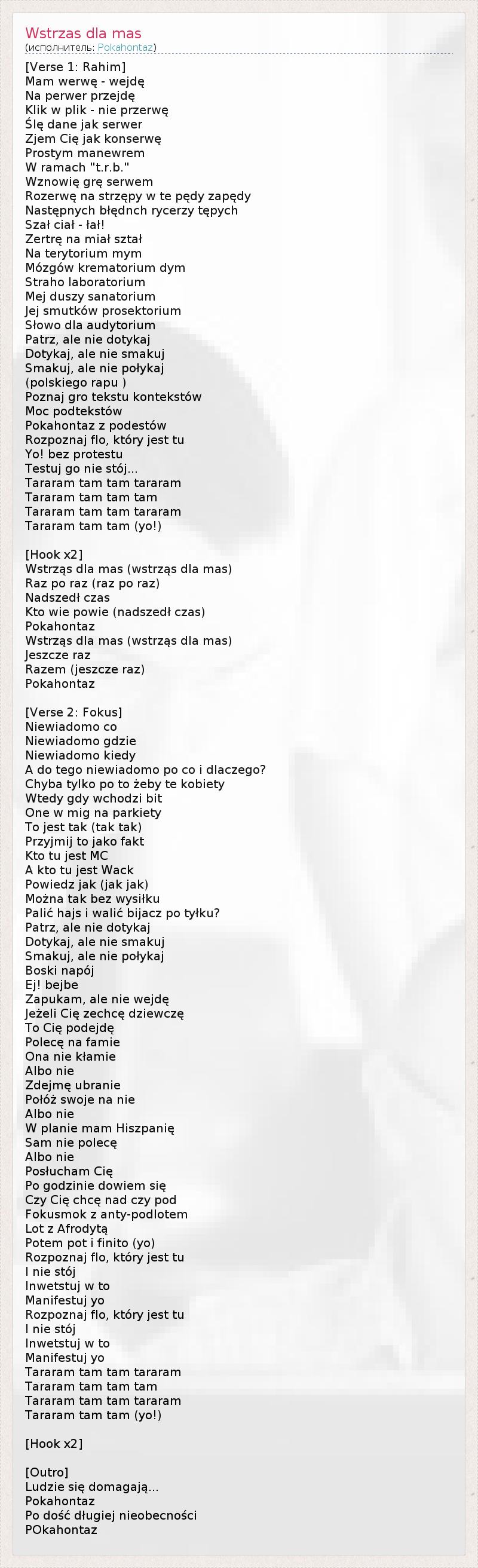 А как ты думаешь, о чем песня "Wstrzas dla mas" ?