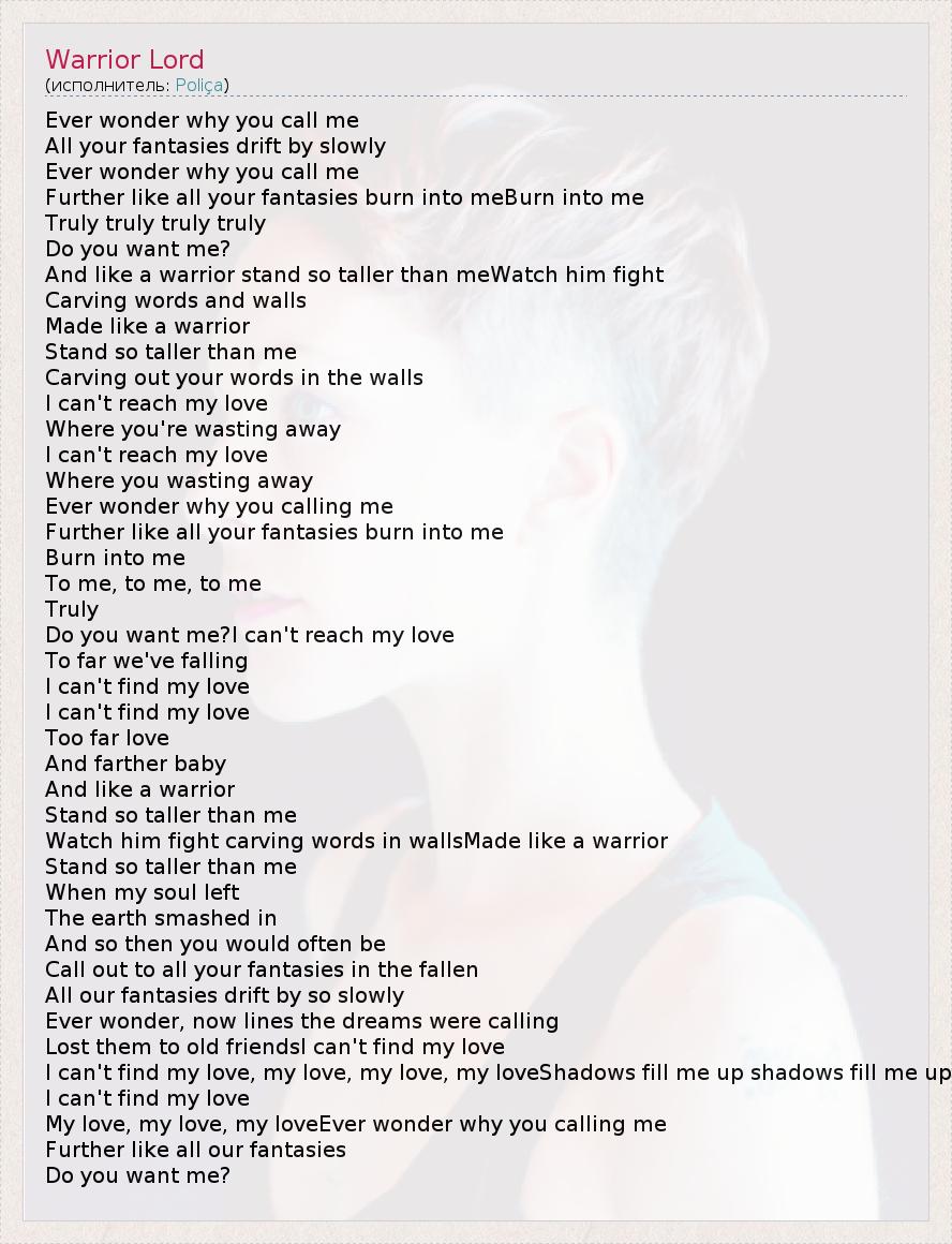 А как ты думаешь, о чем песня "Warrior Lord" ?