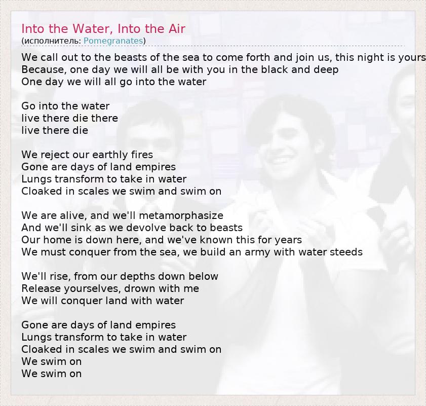 А как ты думаешь, о чем песня "Into the Water, Into the Air" ?