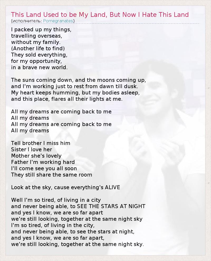 А как ты думаешь, о чем песня "This Land Used to be My Land, But Now I Hate This Land" ?