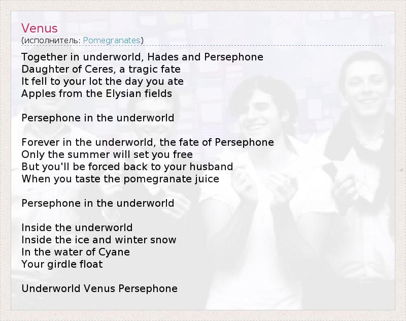 Underworld Venus Persephone