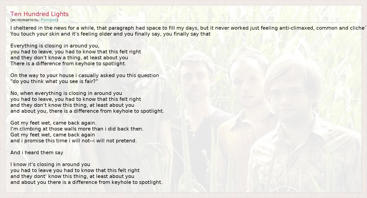 А как ты думаешь, о чем песня "Ten Hundred Lights" ?