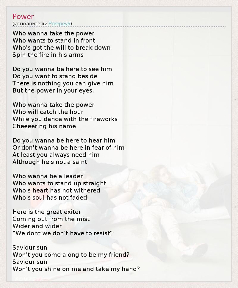 А как ты думаешь, о чем песня "Power" ?