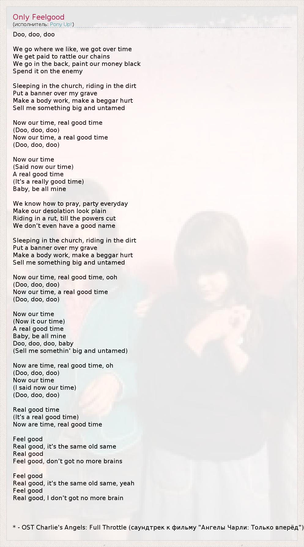 А как ты думаешь, о чем песня "Only Feelgood" ?