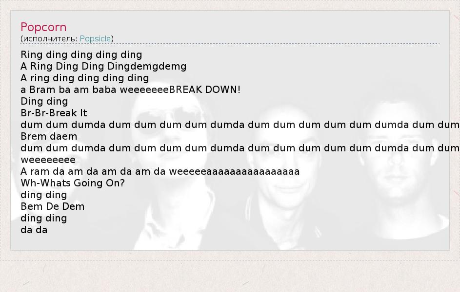 А как ты думаешь, о чем песня "Popcorn" ?