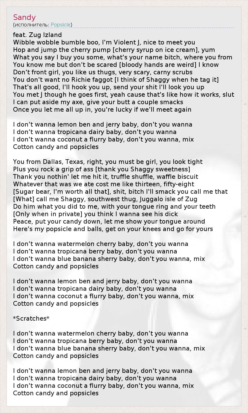I don't wanna blue banana sherry baby, don't you wanna, mix