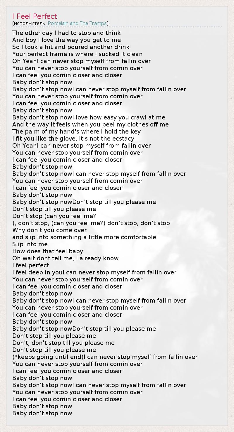 А как ты думаешь, о чем песня "I Feel Perfect" ?