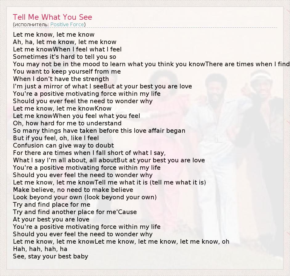 А как ты думаешь, о чем песня "Tell Me What You See" ?