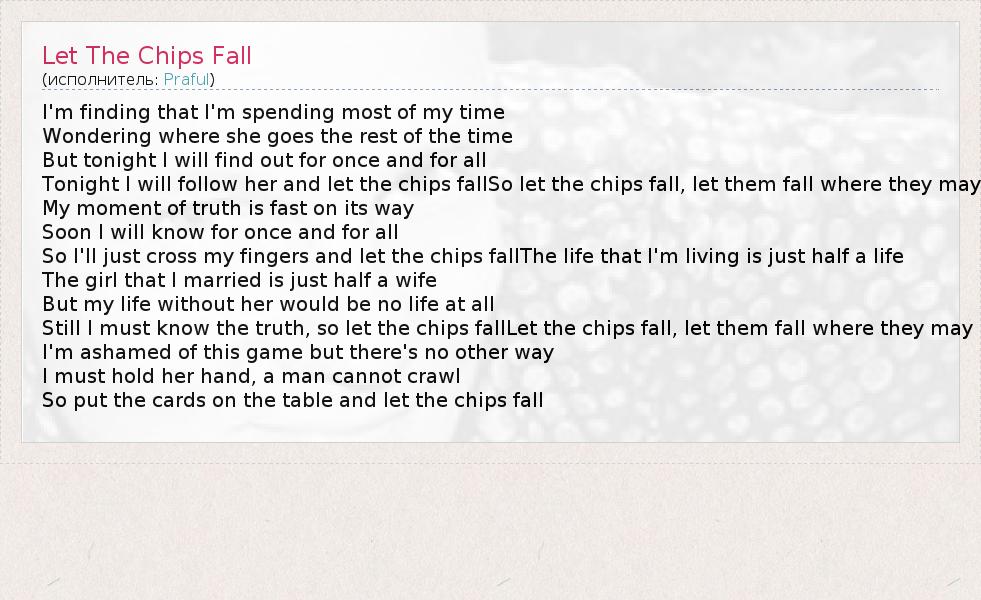 А как ты думаешь, о чем песня "Let The Chips Fall" ?