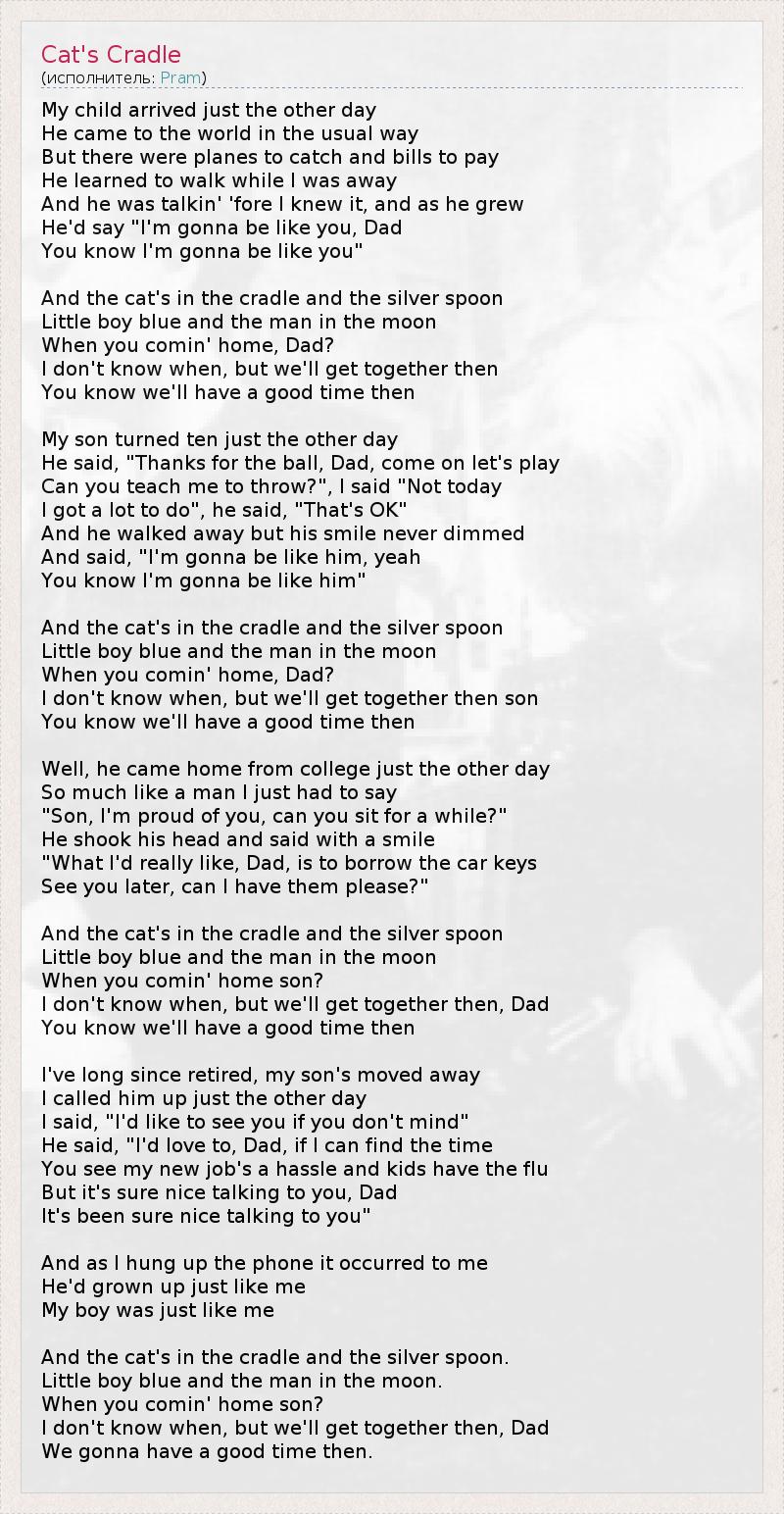 А как ты думаешь, о чем песня "Cat's Cradle" ?