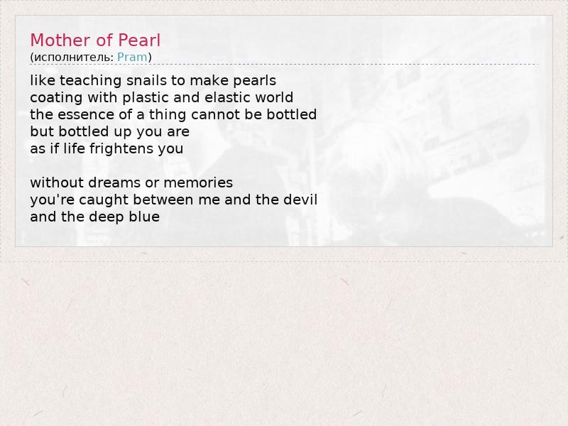 А как ты думаешь, о чем песня "Mother of Pearl" ?
