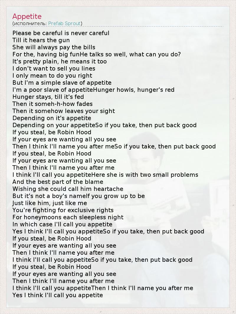 А как ты думаешь, о чем песня "Appetite" ?