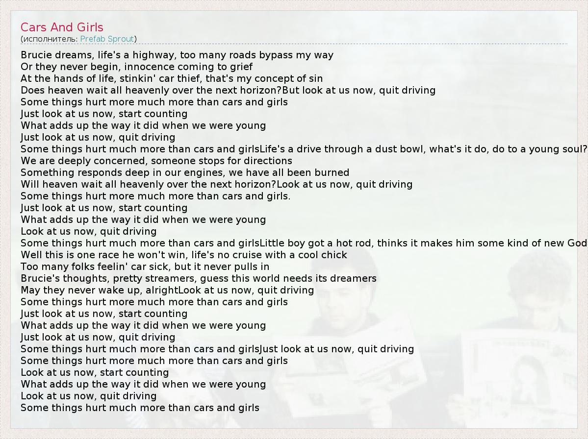 А как ты думаешь, о чем песня "Cars And Girls" ?