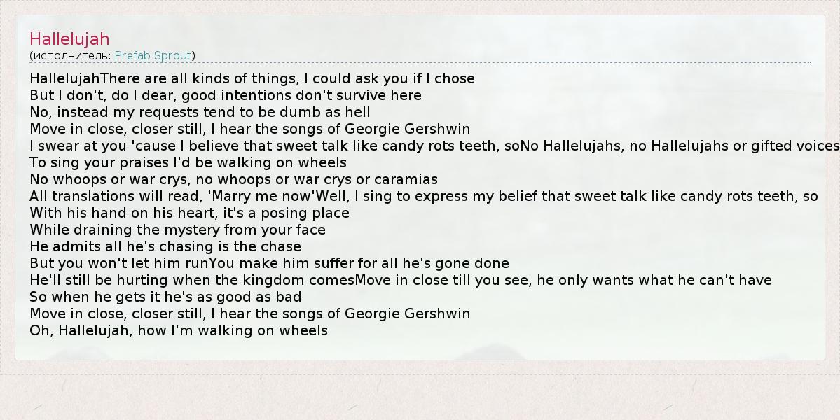 А как ты думаешь, о чем песня "Hallelujah" ?