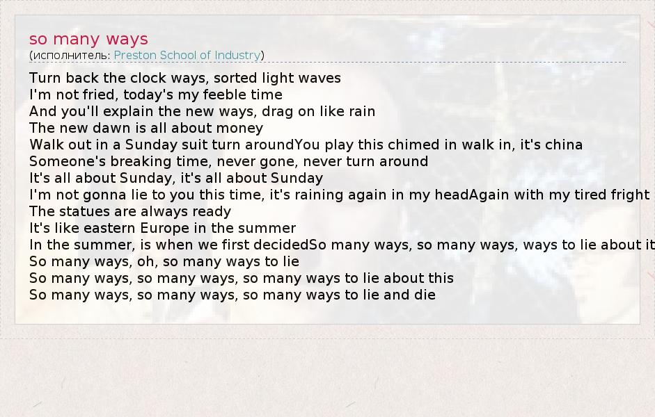 In the summer, is when we first decidedSo many ways, so many ways, ways to lie about it