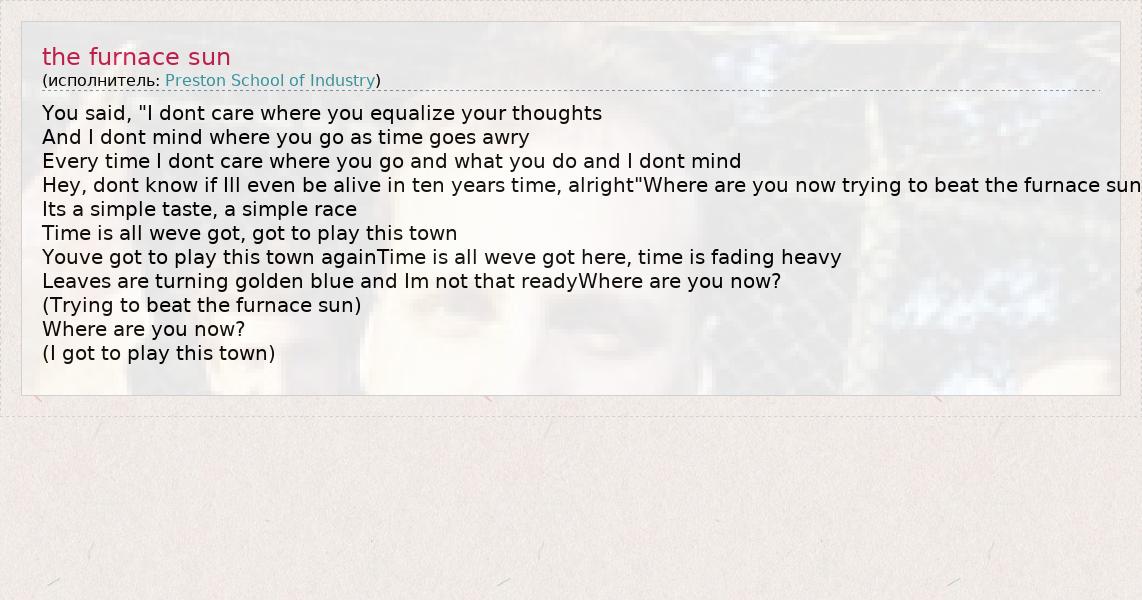 А как ты думаешь, о чем песня "the furnace sun" ?