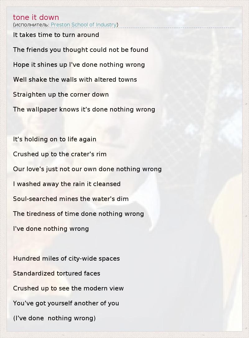 А как ты думаешь, о чем песня "tone it down" ?