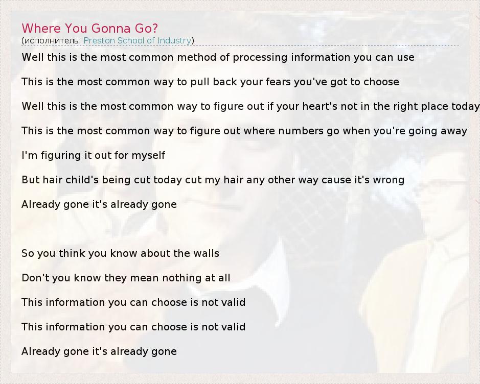 А как ты думаешь, о чем песня "Where You Gonna Go?" ?