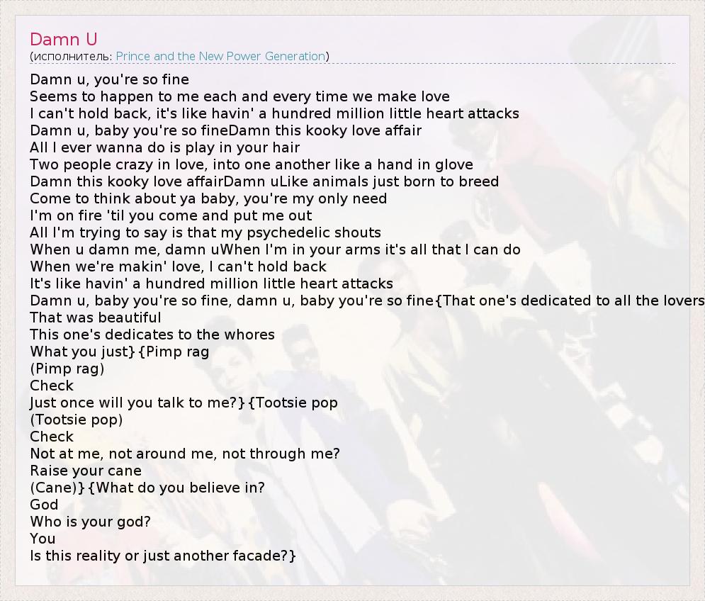 Damn u, baby you're so fine, damn u, baby you're so fine{That one's dedicated to all the lovers