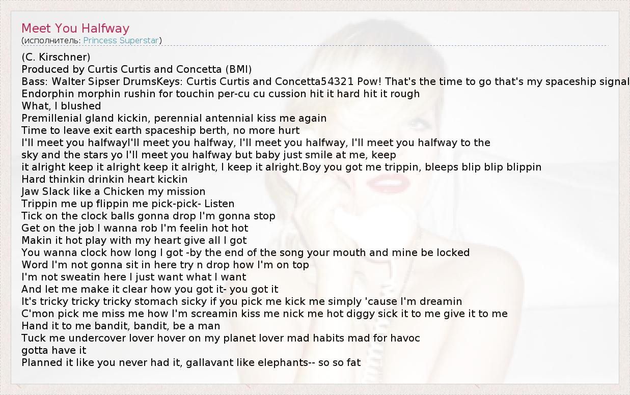 А как ты думаешь, о чем песня "Meet You Halfway" ?