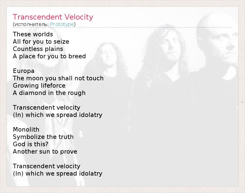 ГлавнаяИсполнителиPrototypeTranscendent Velocity