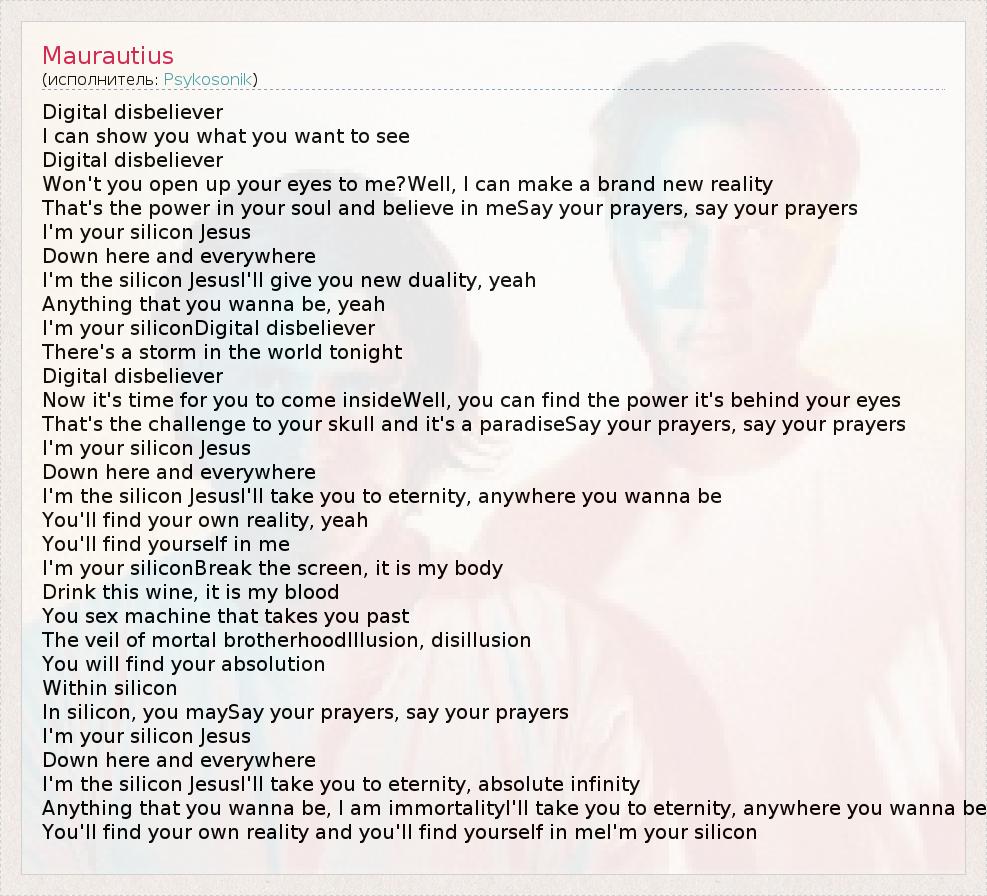 You'll find your own reality and you'll find yourself in meI'm your silicon