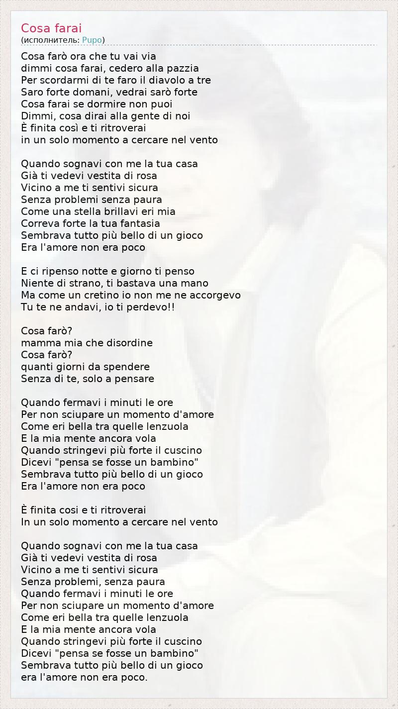 А как ты думаешь, о чем песня "Cosa farai" ?