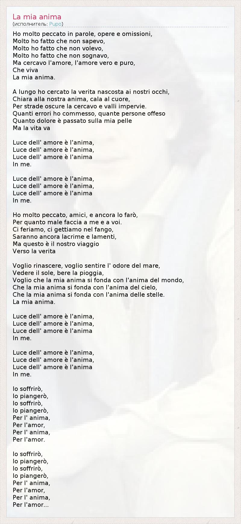 А как ты думаешь, о чем песня "La mia anima" ?