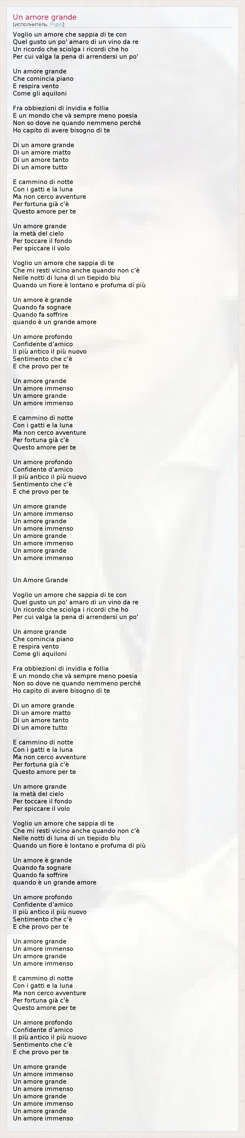 А как ты думаешь, о чем песня "Un amore grande" ?