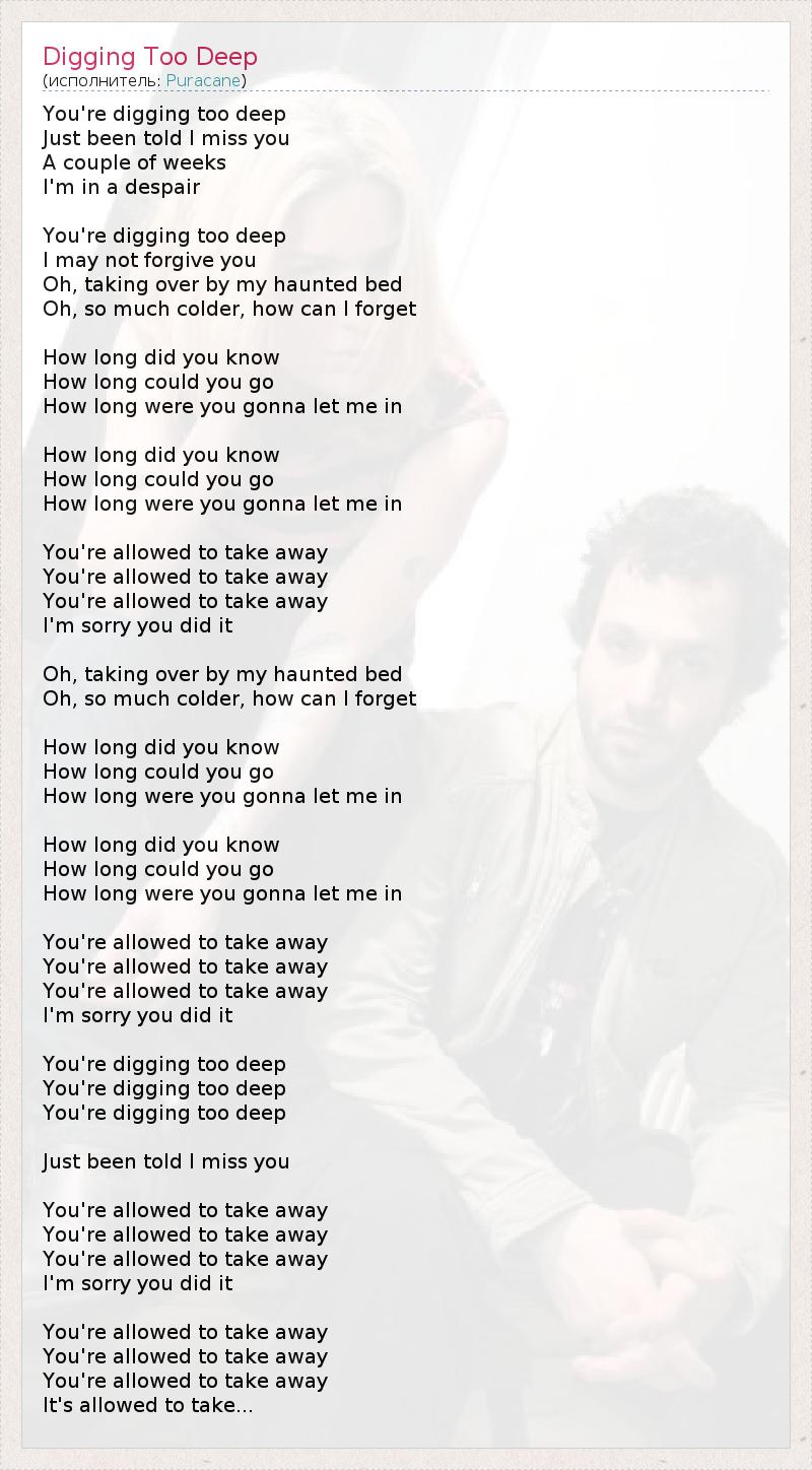 А как ты думаешь, о чем песня "Digging Too Deep" ?