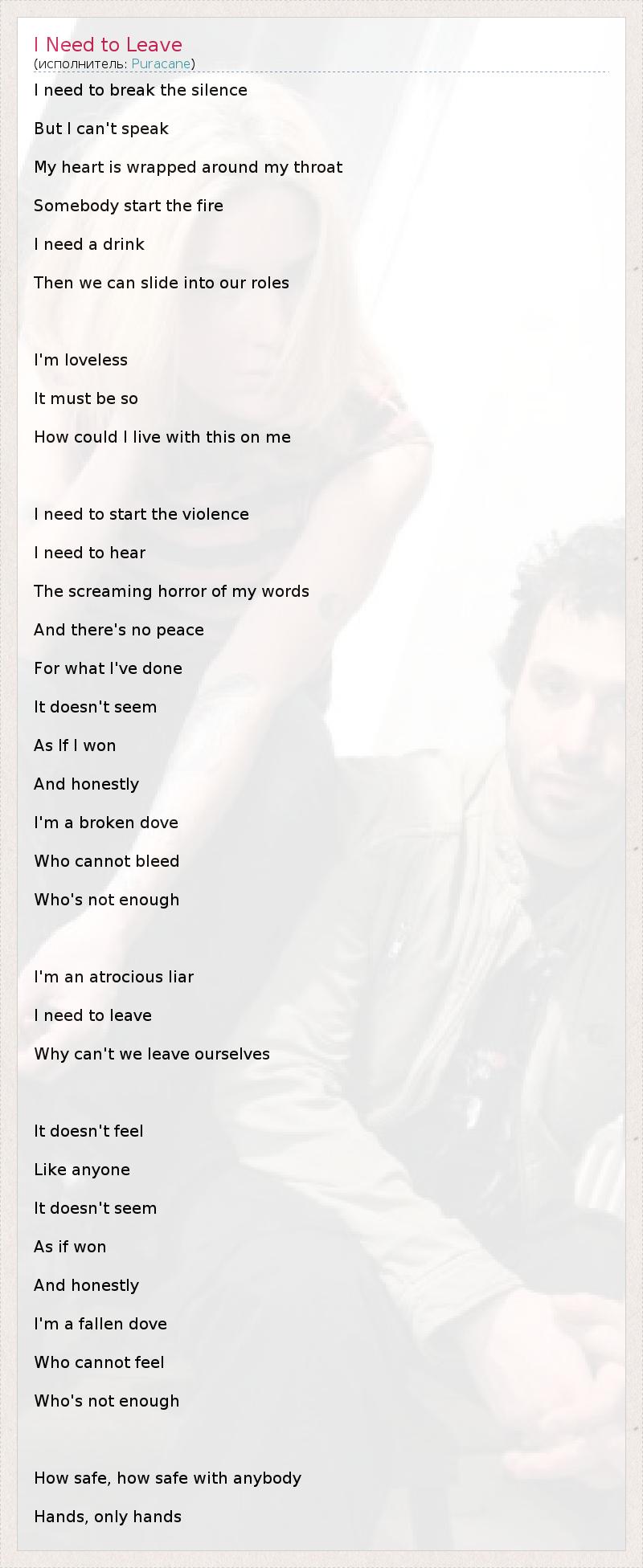 А как ты думаешь, о чем песня "I Need to Leave" ?